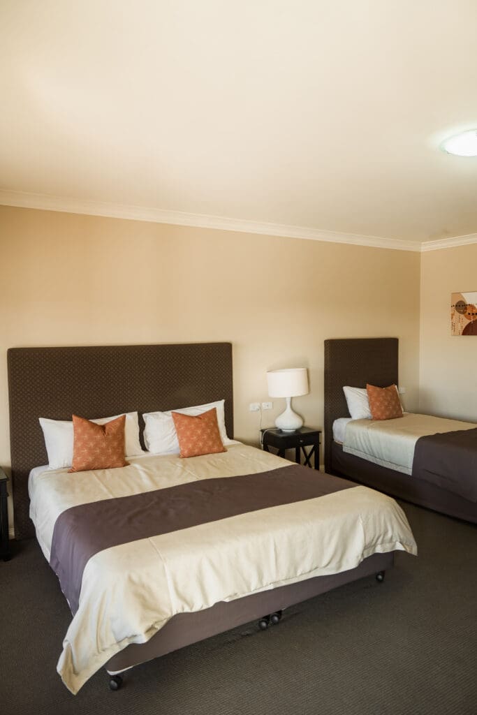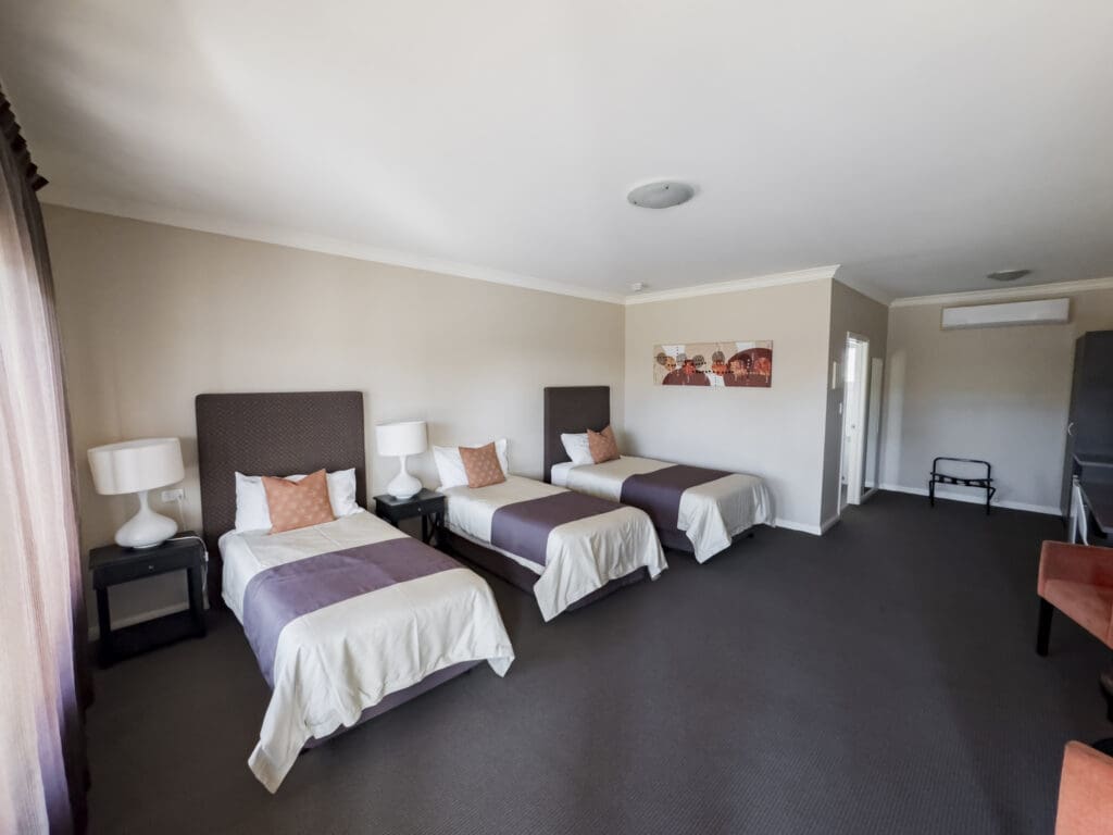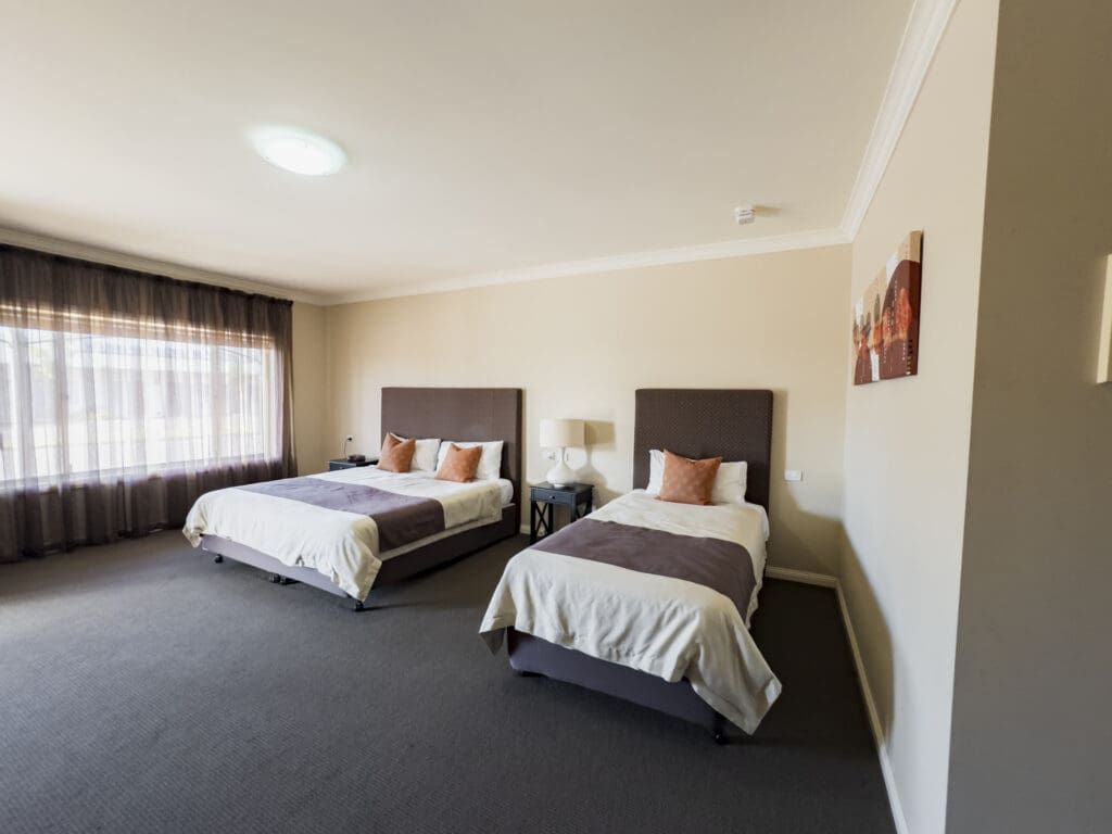 This Deluxe Large Room contains 3 king single beds.
